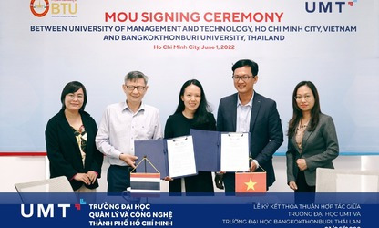 Ngày 1/6/2022 đã diễn ra Lễ ký kết hợp tác giữa Trường Đại học Quản lý và Công nghệ TP.HCM (UMT) cùng Trường Đại học BangkokThonburi (BTU, Thái Lan). Đây là một trong những hoạt động thường xuyên của Trường Đại học Quản lý và Công nghệ TP.HCM (UMT) nhằm thúc đẩy và phát triển chương trình Hợp tác liên kết quốc tế, doanh nghiệp, đại học của nhà trường.